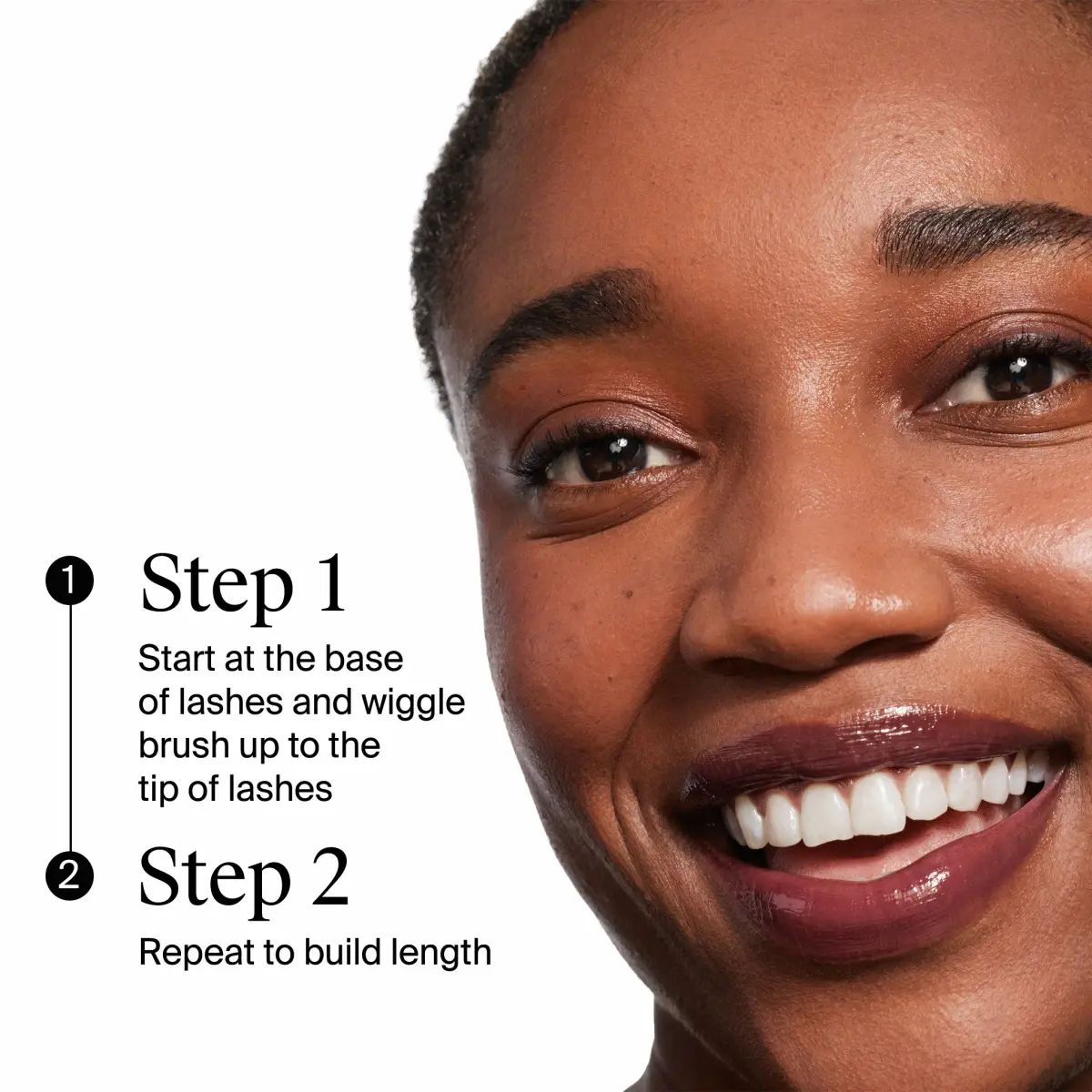 Start at the base of lashes and wiggle brush up to the tip of lashes. Repeat to build length. Easily removes with soap and water or Neutrogena® eye makeup remover.