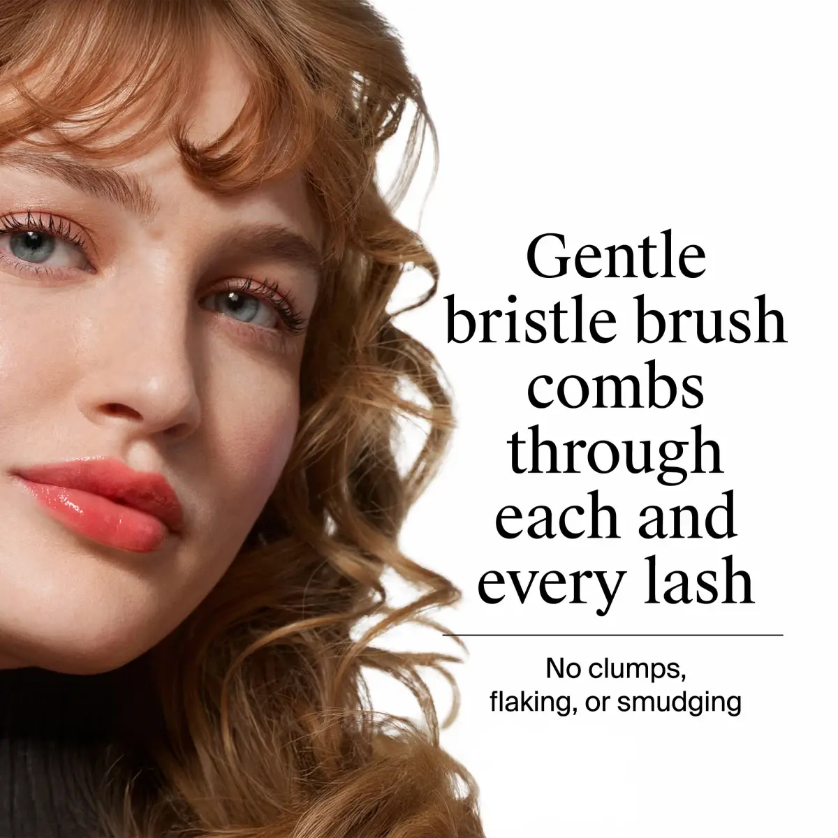 Gentle bristle brush combs lashes root to tip, applying rich color for definition and intensity.
