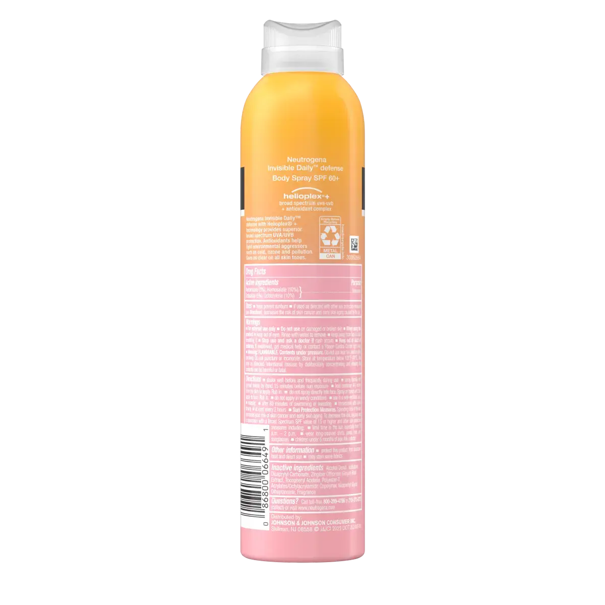 Neutrogena Invisible Daily Defense Body Spray Sunscreen with broad spectrum SPF60+.