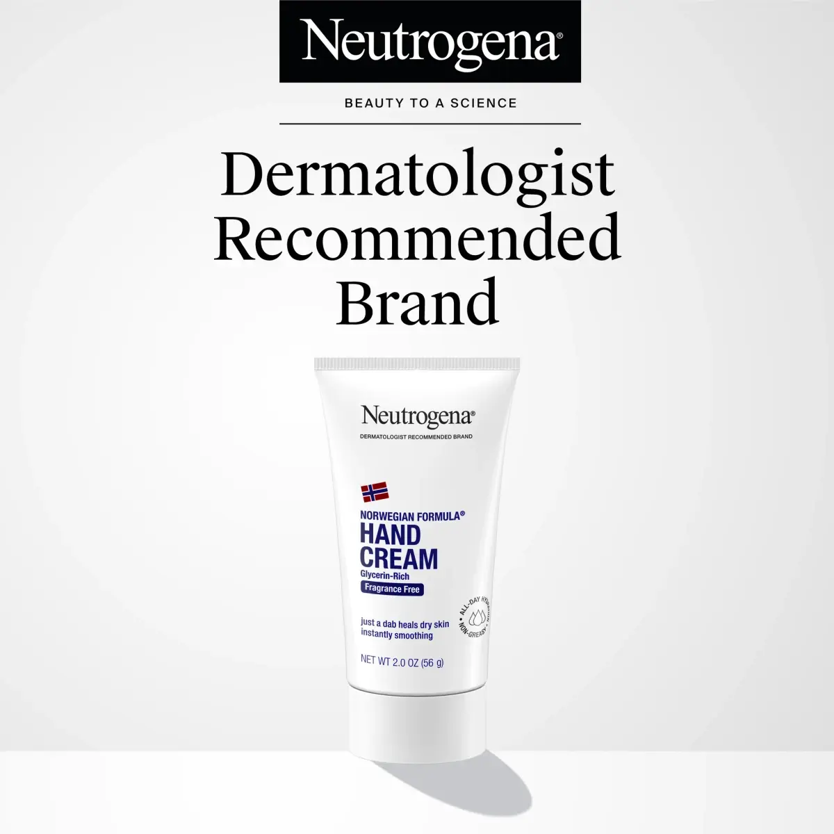 2 oz tube of fragrance-free Neutrogena Norwegian Formula Hand Cream for dry hands.