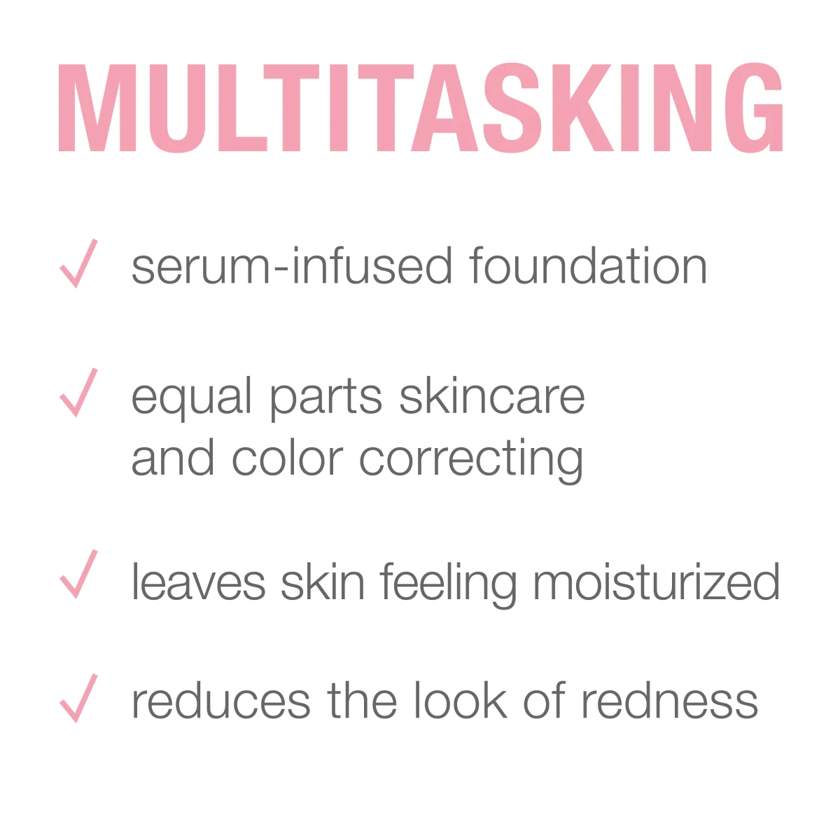 Color-correcting liquid makeup foundation helps visibly reduce redness.