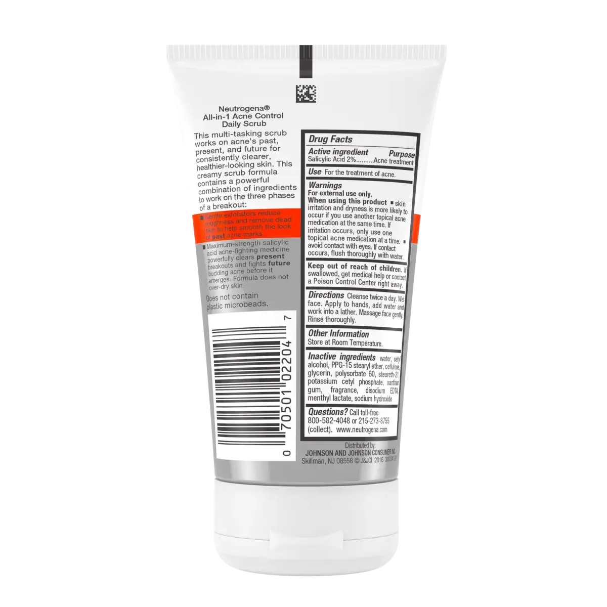 Start fresh every day with Neutrogena’s All-in-1 Acne Control Face Scrub. This multi-action daily exfoliator, powered by 2% salicylic acid, helps treat breakouts, unclogs pores, and exfoliates to help reduce the appearance of post-acne marks over time. The oil-free formula contains gentle microbeads that buff away dead surface skin and excess oil without overdrying. Ideal for oily and ac-ne-prone skin types, this facial scrub also helps smooth rough texture and support a more even, clearer-looking complexion. Use daily as part of your skincare routine to fight acne past, present, and future.