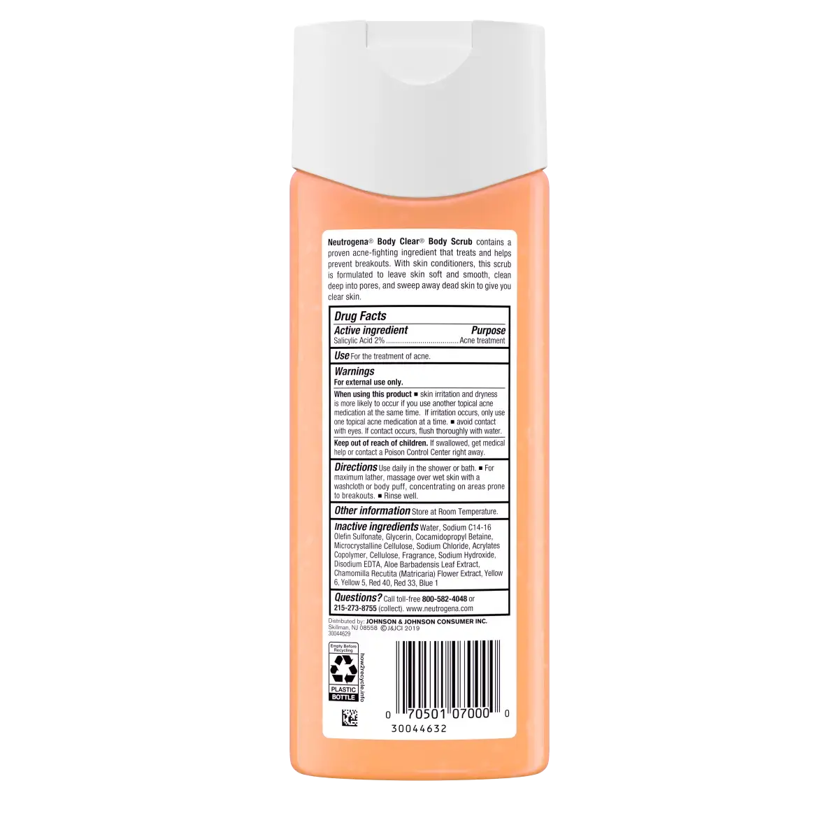 Neutrogena Body Clear Acne Body Scrub with 2% salicylic acid is a dual-action exfoliating body scrub and salicylic acid body wash that treats and helps prevent body acne breakouts on back, chest, and shoulders. This acne body wash combines proven acne-fighting salicylic acid with exfoliating beads to sweep away dead skin, cleanse pores, and support clear, smooth skin. The oil-free, non-comedogenic formula rinses clean without pore-clogging residue and is gentle enough for daily use on acne-prone and all skin types. Free of plastic microbeads, this exfoliating body wash creates a rich foaming lather and contains aloe and chamomile. Ideal acne body wash for women and men seeking an acne treatment, back acne body wash, or body exfoliator scrub. This Neutrogena body wash from dermatologist-recommended brand is an essential addition to your personal care products for self care and beauty.