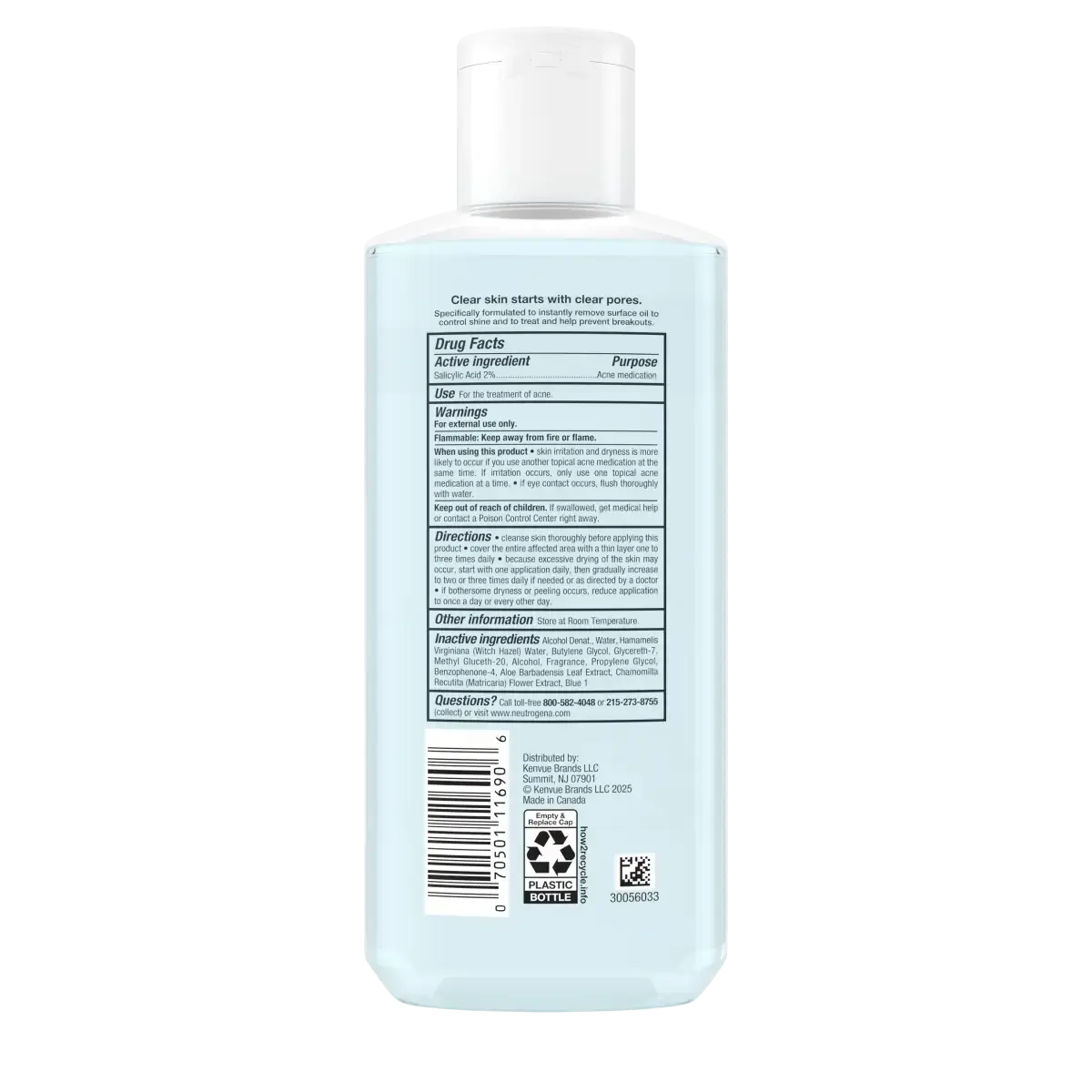 Clear skin begins with clear pores. Neutrogena Clear Pore Oil-Eliminating Astringent For Face Acne Toner, containing 2% salicylic acid acne treatment for face, is designed to remove surface oil, control shine, and treat and help prevent acne breakouts, blemishes, and blackheads without over-drying. This maximum-strength facial toner, ideal for acne-prone skin, combines salicylic acid, a dermatologist-recommended ingredient, with witch hazel to provide an effective cleansing experience. This face toner for women and men is suitable for use in the morning, afternoon, and night. It helps manage surface oil, making it a valuable addition to any regular acne skin care routine. To apply, cleanse your skin first, then cover the affected areas with a thin layer of the pore cleaner one to three times daily. Start with one application of this witch hazel toner per day and gradually increase to two or three times daily as needed to avoid excessive drying.