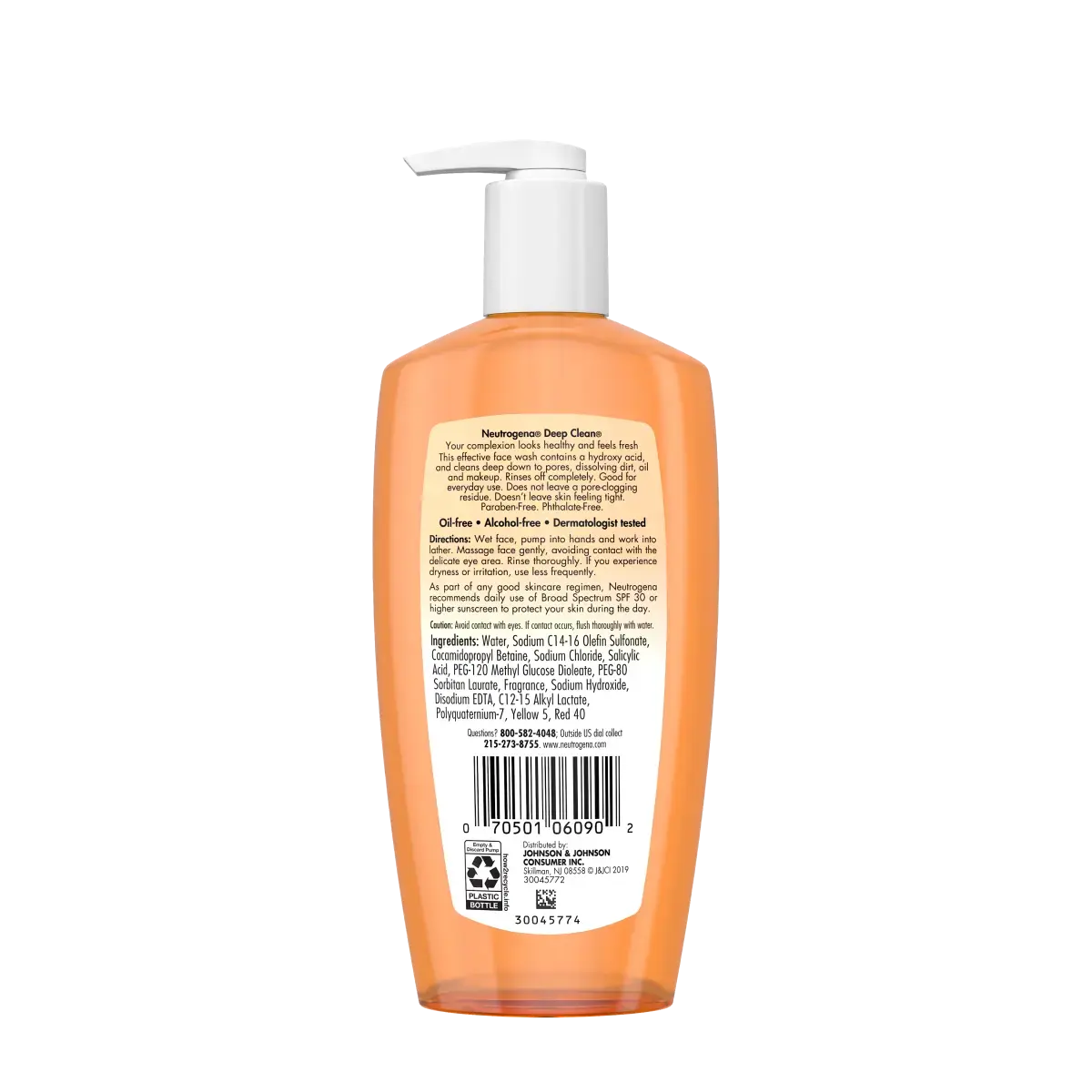 Help improve the look and feel of your skin with Neutrogena Deep Clean Facial Cleanser. Formulated for normal-to-oily skin, this deep clean face wash works two ways to help leave your complexion looking fresh and healthy. First, the daily face wash cleans deep down into pores to dissolve dirt, oil, and makeup. Then it uses the power of hydroxy acid to remove dead surface skin that can dry and dull your complexion. Dermatologist-tested, this facial cleanser is oil-free and alcohol-free, so it won't dry your skin or leave behind pore-clogging residue. It's also non-comedogenic so it won't clog pores.