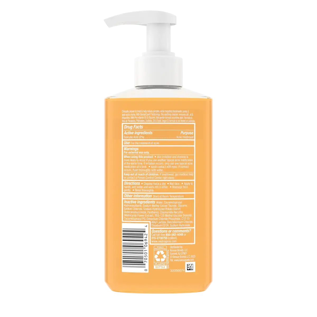 Cleanse twice a day. Wet face. Apply to hands, add water and work into a lather. Massage face gently. Rinse thoroughly. Other information Store at Room Temperature. Questions? Call toll-free 800-582-4048 or 215-273-8755 (collect) or visit www.neutrogena.com