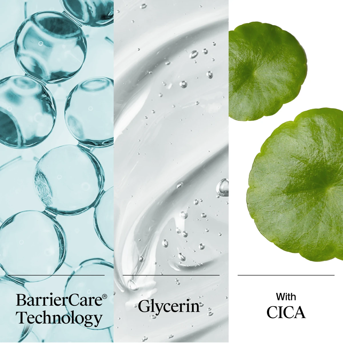 Hypoallergenic face wash with CICA and BarrierCare Technology.