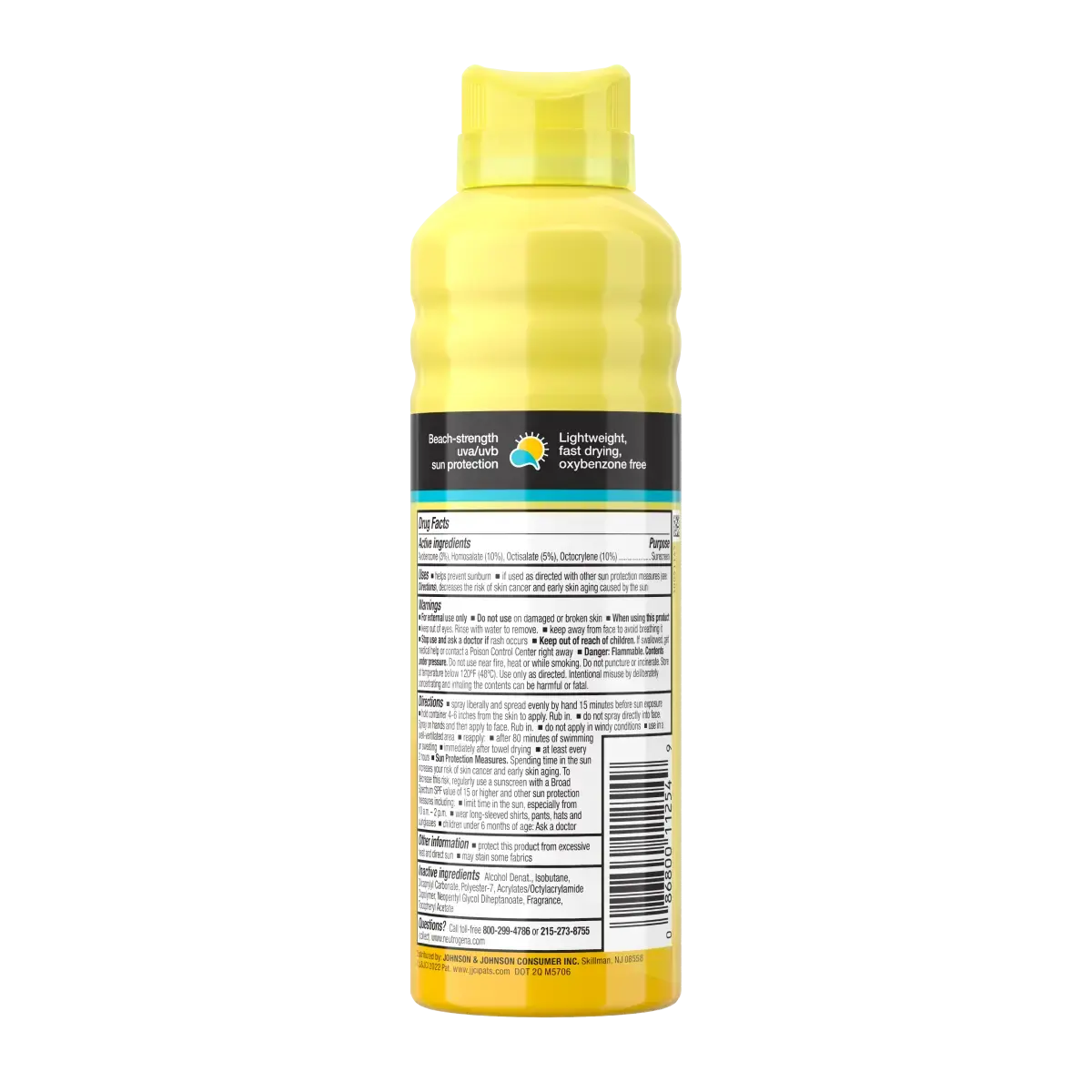 Get ready for fun in the sun with Neutrogena Beach Defense Spray Sunscreen SPF 50, Broad Spectrum Sunscreen you’ll love to wear. Help protect your active family during beach outings & everyday sun exposure with the convenient & mess-free body sunscreen spray. Water resistant sunscreen (up to 80 minutes) is perfect for active families, so you can swim, sweat, & have fun. Lightweight, fast absorbing SPF 50 Sunscreen spray with Helioplex Technology delivers powerful broad spectrum sun protection, withstanding the harshest of UV rays. Oil free and PABA free, this formula works as a reliable adult and kids sunscreen. This Neutrogena sunscreen features a light scent and leaves no white cast - all from a dermatologist recommended sun care brand. Apply 15 minutes before sun exposure to help protect skin whether you’re enjoying a family day at the shore or relaxing on a solo beach outing. Our sunscreens are Hawaii Reef Act 104 compliant - Oxybenzone and Octinoxate free.