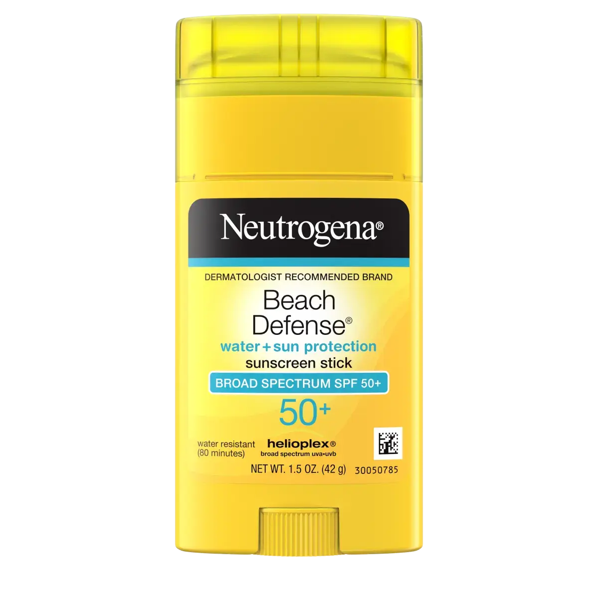 One 1.5 oz stick of Neutrogena Beach Defense Face & Body Sunscreen Stick with SPF 50+.